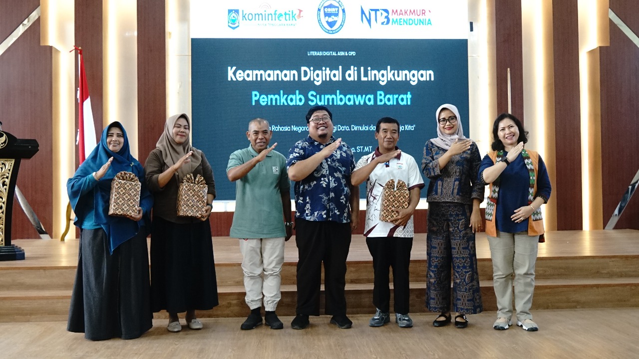 Sumbawa Barat — Upaya memperkuat keamanan informasi di lingkungan Pemerintah Kabupaten Sumbawa Barat terus ditingkatkan. Hal ini terlihat dari penyelenggaraan Literasi Digital bagi ASN dan OPD, hasil kerja sama Dinas Komunikasi dan Informatika KSB dengan Dinas Kominfotik Provinsi NTB, yang digelar pada Jumat, 5 Desember 2025, di Aula Lantai 3 Gedung Sekretariat Daerah.