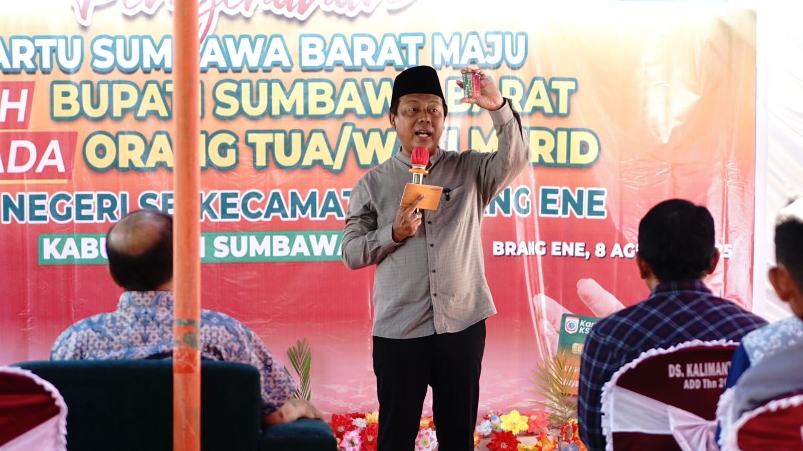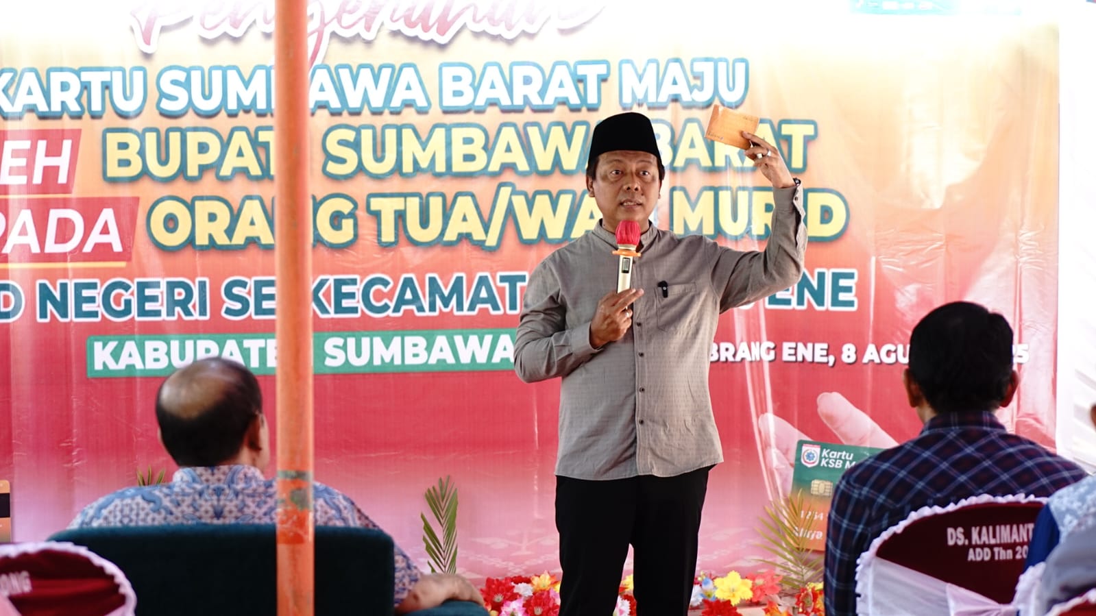 Bupati Sumbawa Barat Serahkan Kartu Sumbawa Barat Maju kepada Wali Murid TK dan SD se-Kecamatan Brang Ene