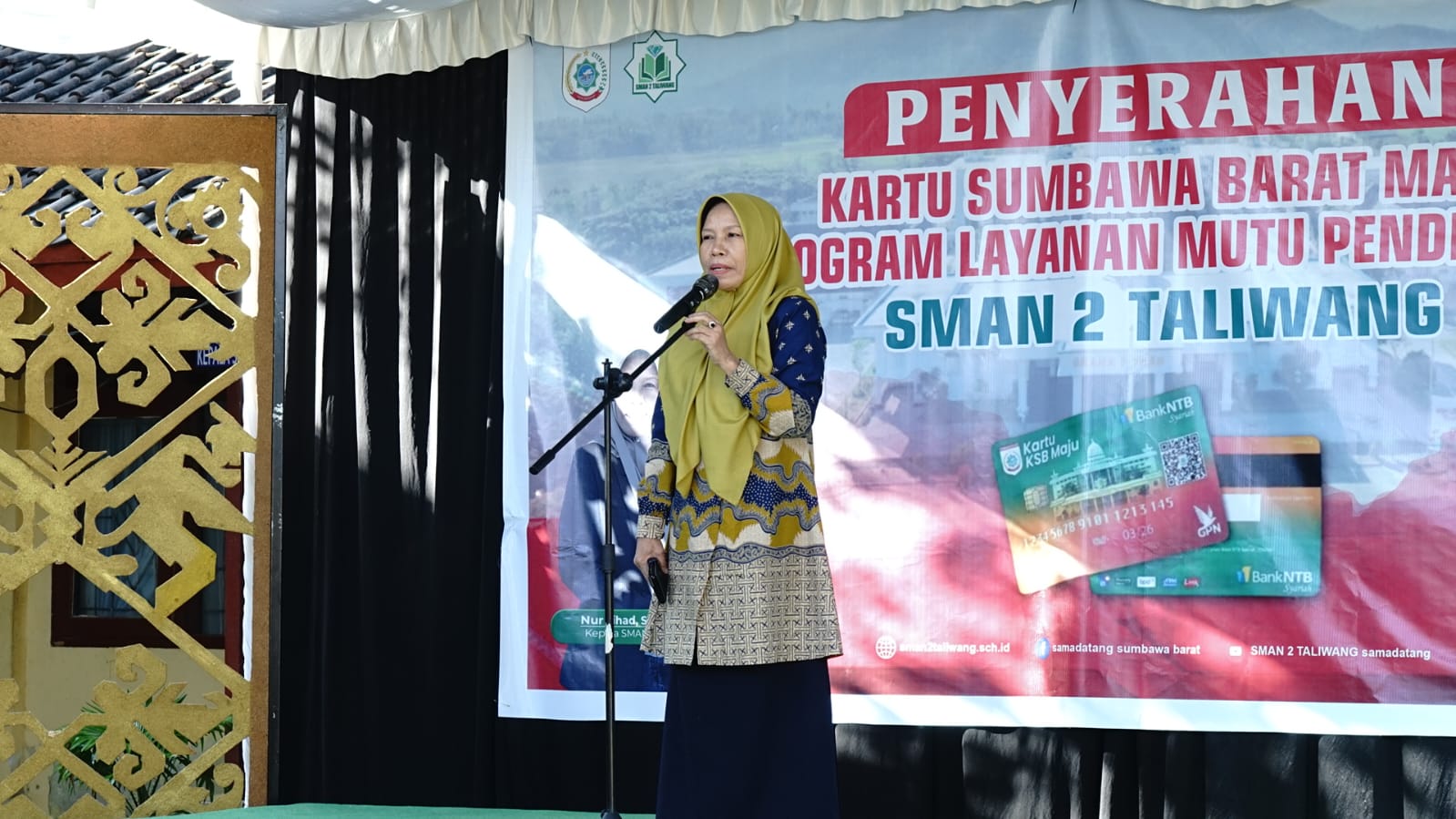 Sumbawa Barat – Pemerintah Kabupaten Sumbawa Barat (KSB) melanjutkan roadshow penyerahan Kartu Sumbawa Barat Maju pada hari ke-21 di SMAN 2 Taliwang. Sebanyak 178 siswa menerima Kartu Sumbawa Barat Maju untuk layanan Pendidikan, sebagai bentuk komitmen daerah dalam memastikan pemenuhan hak-hak dasar masyarakat, khususnya di bidang Pendidikan. Penyerahan dilakukan secara simbolis oleh Bupati Sumbawa Barat, H. Amar Nurmansyah, S.T., M.Si kepada Wali Murid baru pada Kamis (14/08/2025).