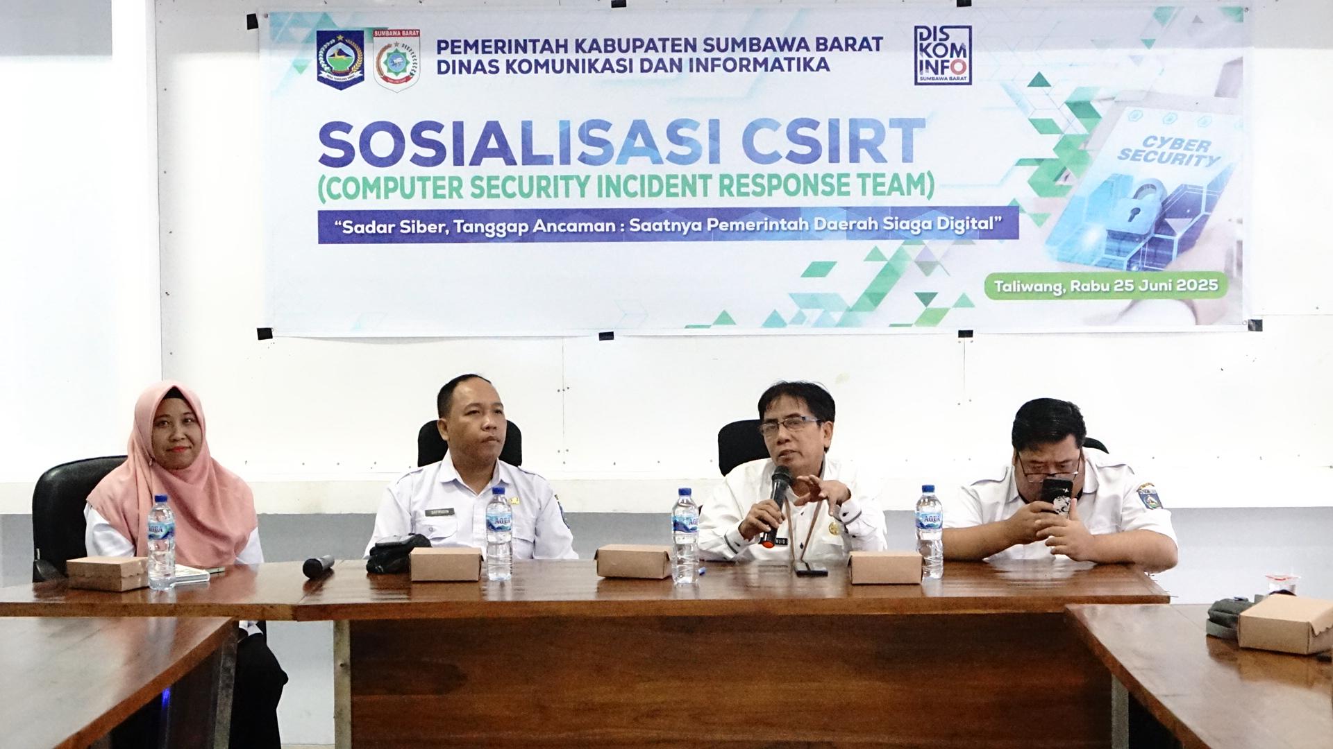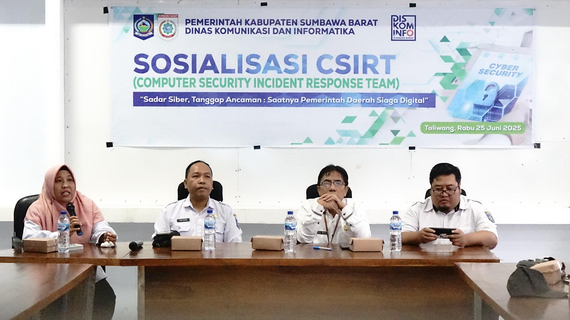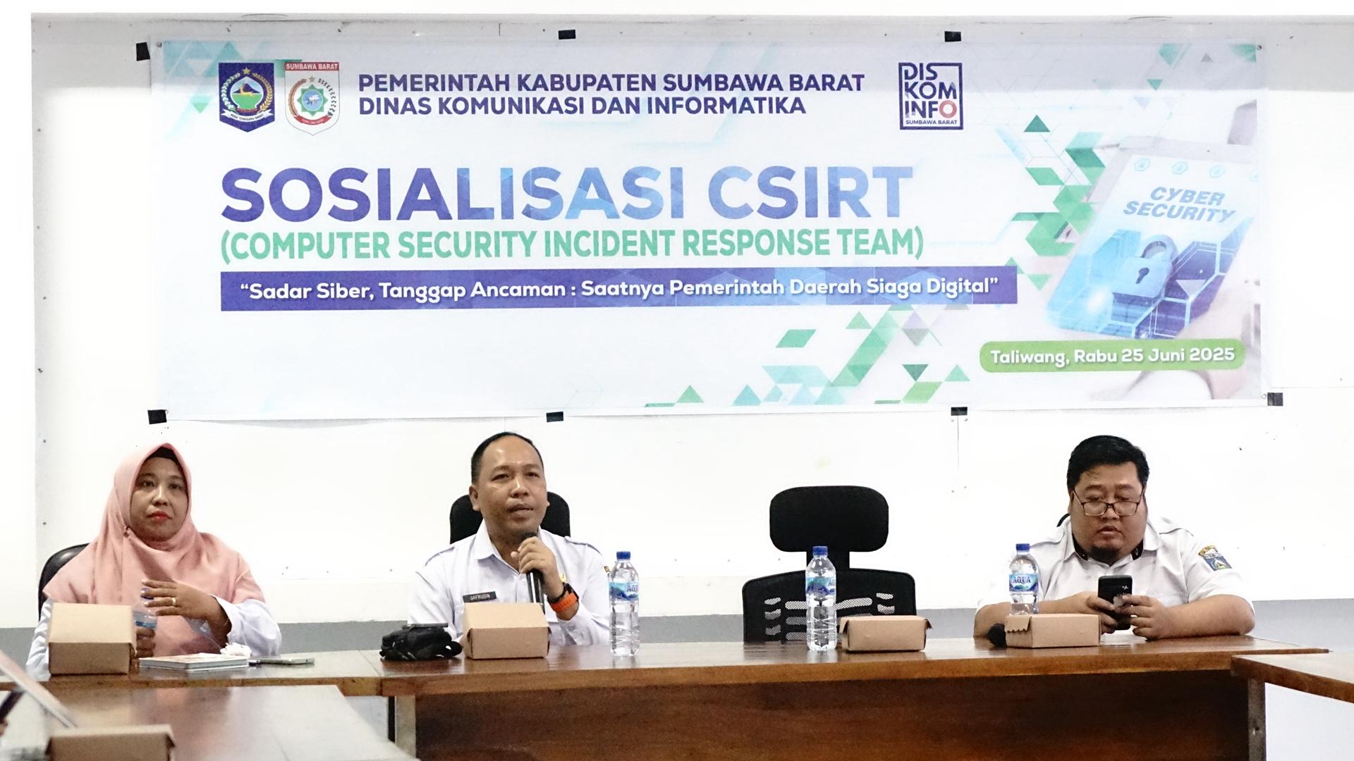 Taliwang, Sumbawa Barat — Bidang Statistik dan Persandian Dinas Komunikasi dan Informatika (Diskominfo) Kabupaten Sumbawa Barat (KSB) menyelenggarakan kegiatan sosialisasi percepatan pembentukan Tim Tanggap Insiden Siber (TTIS) atau Computer Security Incident Response Team (CSIRT) pada Rabu, 25 Juni 2026 bertempat di Aula Diskominfo KSB. Kegiatan ini senada dengan komitmen Diskominfo KSB untuk memperkuat ketahanan dan kesiapsiagaan menghadapi ancaman siber di lingkungan pemerintah daerah.