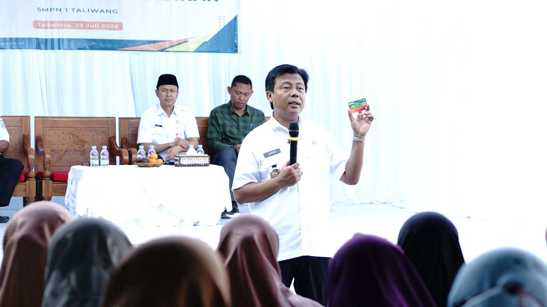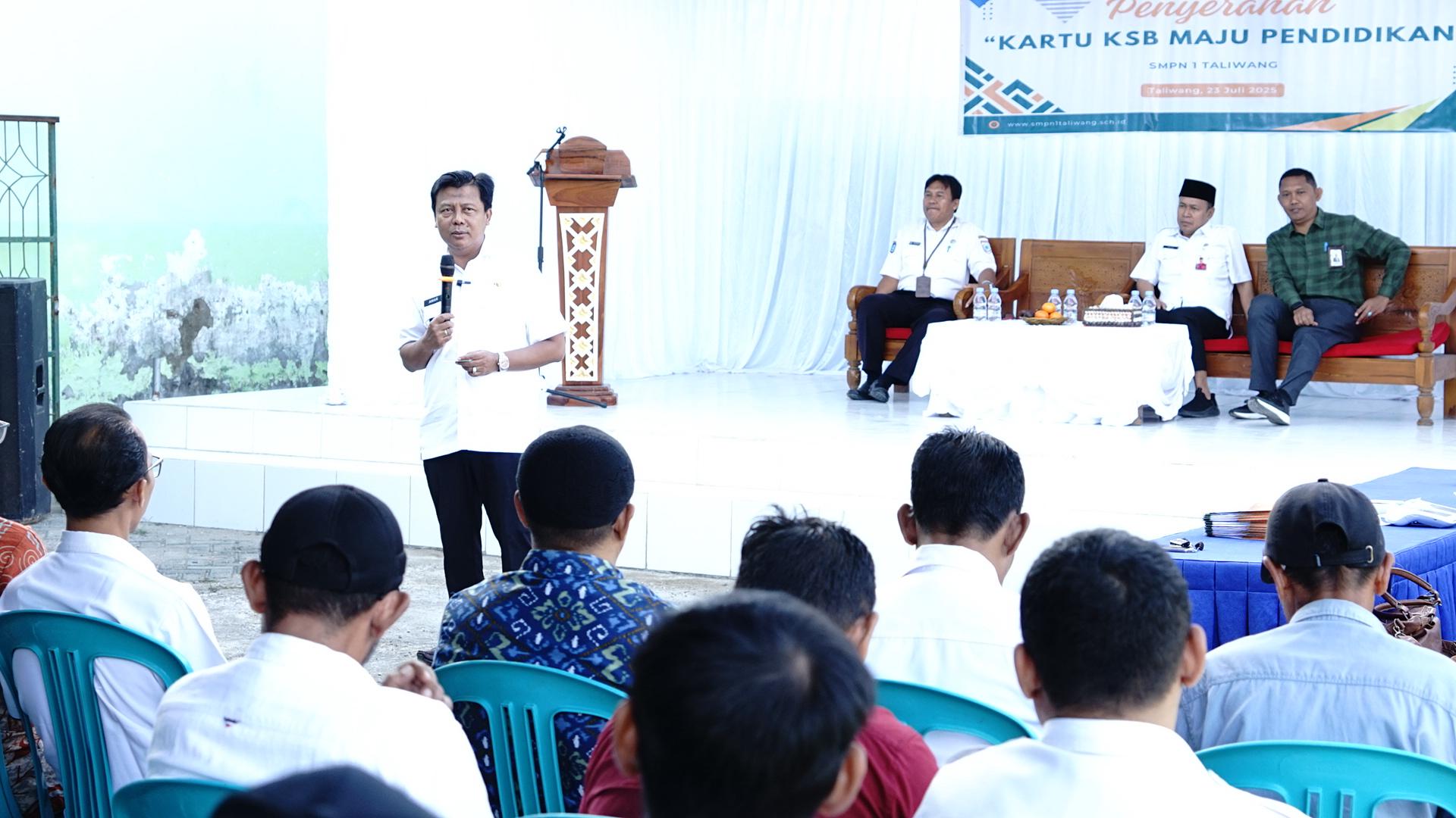Hari Kedua Roadshow, Bupati Sumbawa Barat Serahkan Kartu Sumbawa Barat Maju untuk Maju Pendidikan di SMP Negeri 1 Taliwang
