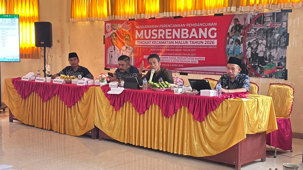 Sumbawa Barat—Pemerintah Kabupaten Sumbawa Barat kembali melanjutkan pelaksanaan Musyawarah Perencanaan Pembangunan (Musrenbang) tingkat kecamatan tahun 2026 dalam rangka penyusunan Rencana Kerja Pemerintah Daerah (RKPD) tahun 2027. Kegiatan yang berlangsung di Aula Kantor Kecamatan Maluk, Kamis (2/4/2026), ini menjadi lokasi terakhir pada hari keempat pelaksanaan Musrenbang tingkat kecamatan dengan mengusung tema “Akselerasi Pelayanan Dasar, Produktivitas Daerah dan Pertumbuhan Klaster Ekonomi Baru.”