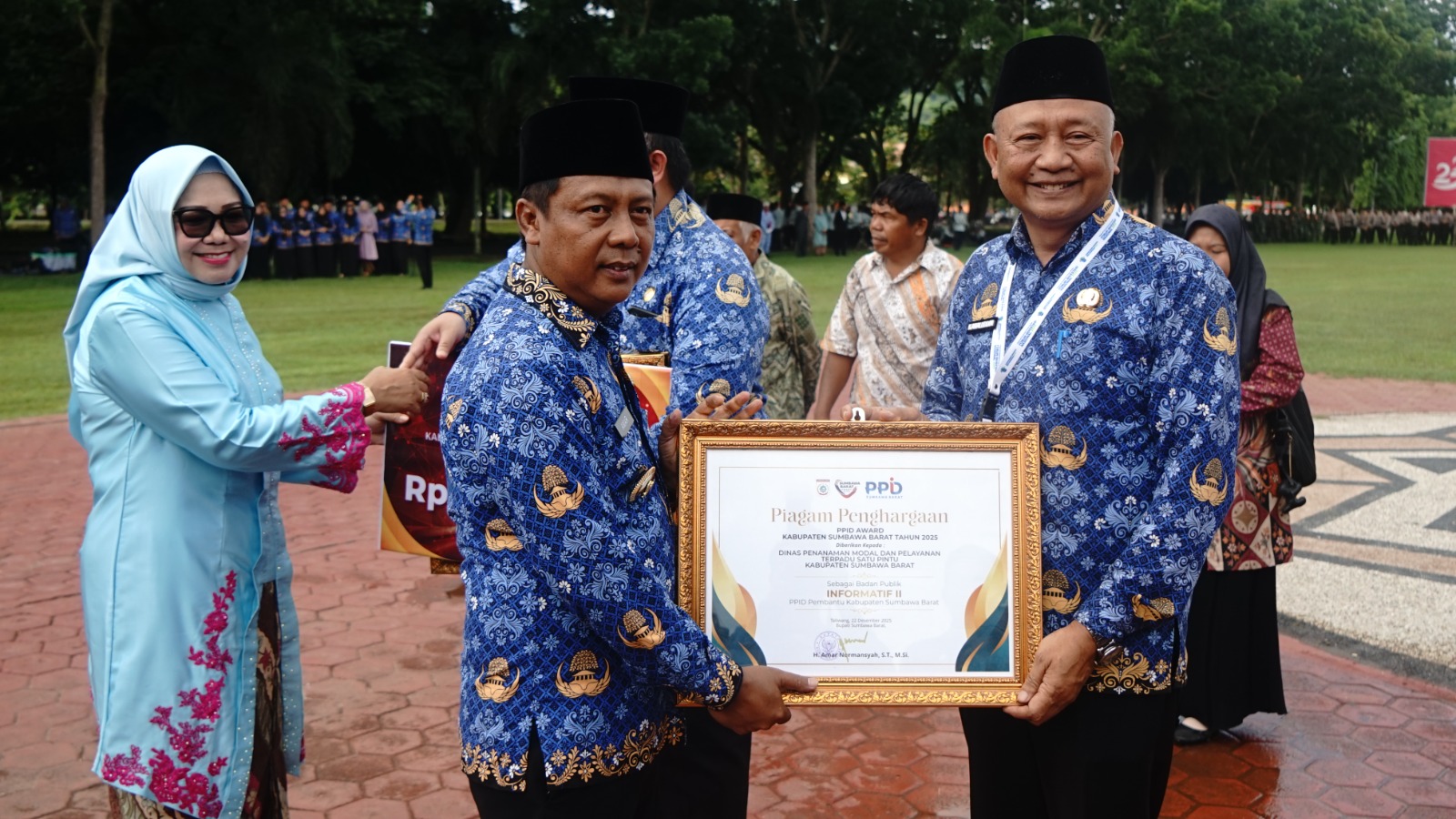 Penghargaan tersebut diserahkan langsung oleh Bupati Sumbawa Barat H. Amar Nurmansyah, S.T., M.Si., didampingi Wakil Bupati Sumbawa Barat Hj. Hanipah, S.Pt., M.M.Inov., pada pra acara Upacara Syukur ke-12 bulan Desember Tahun 2025 yang berlangsung di Lapangan Graha Fitrah, Kompleks Kemutar Telu Center (KTC), Taliwang, Senin (22/12/2025).