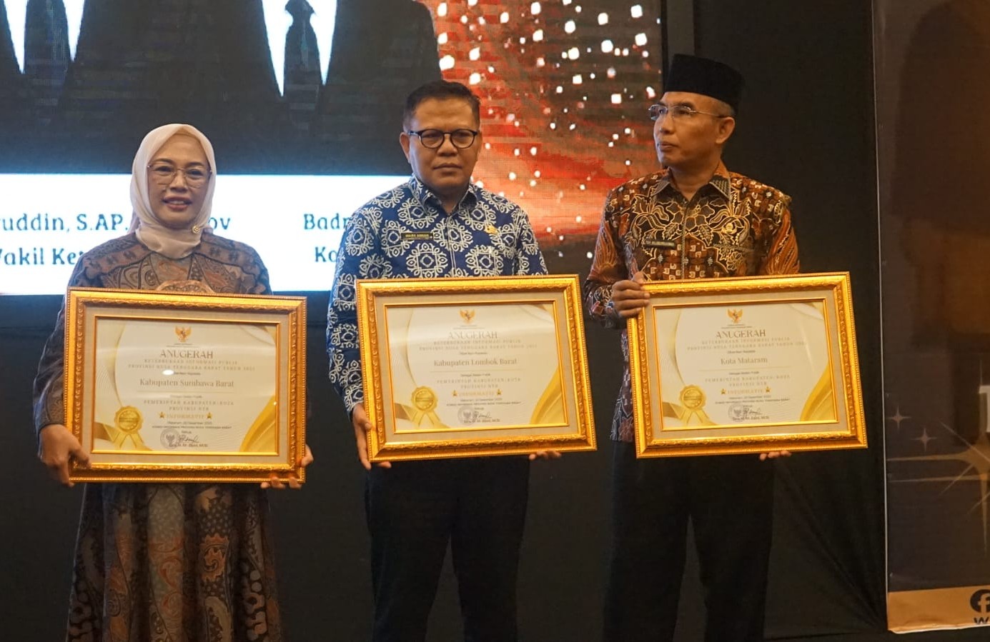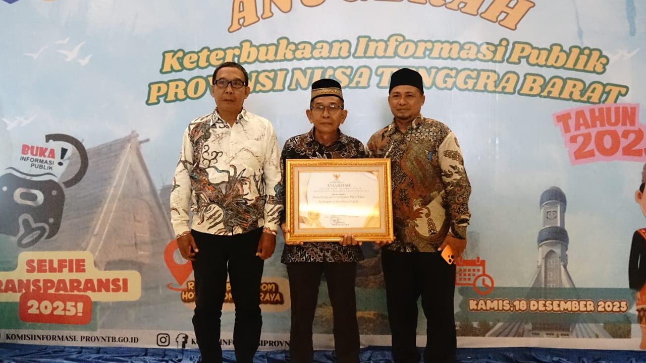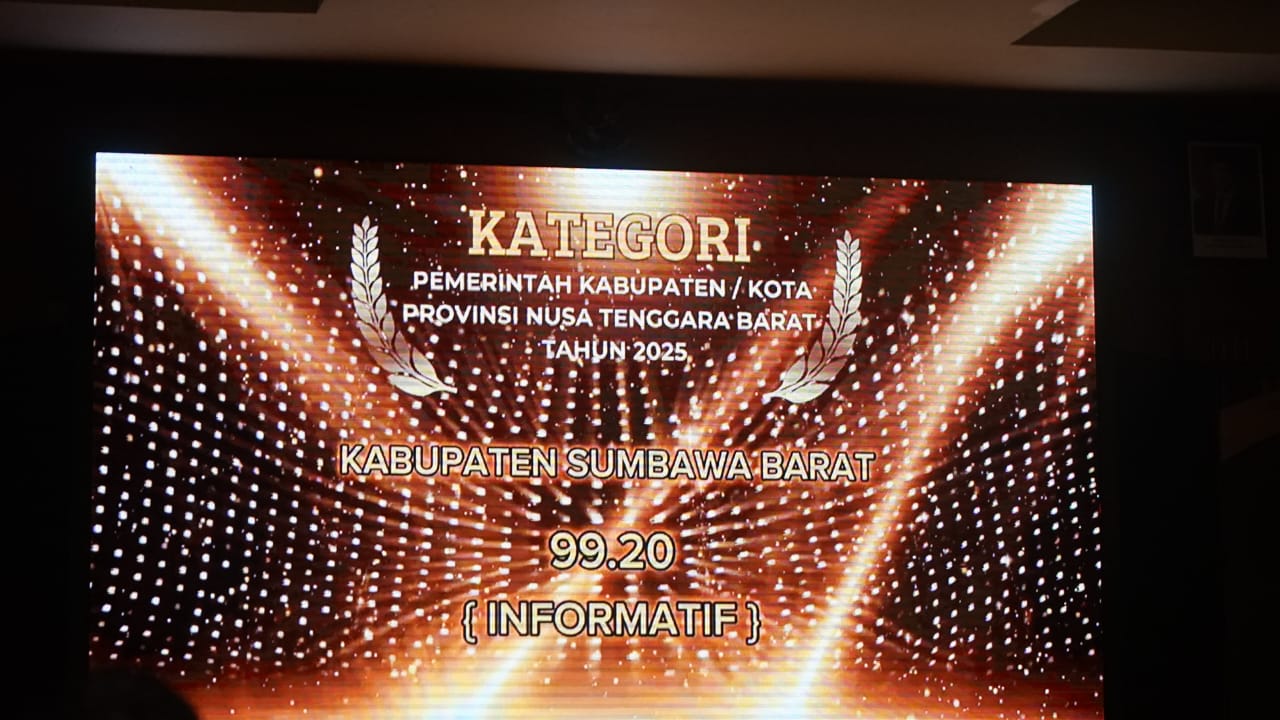 Mataram - Pemerintah Kabupaten Sumbawa Barat kembali menorehkan prestasi pada ajang Anugerah Keterbukaan Informasi Publik Provinsi Nusa Tenggara Barat Tahun 2025 dengan meraih predikat Informatif pada kategori Pemerintah Kabupaten/Kota dengan nilai 99,20, sekaligus menandai keberhasilan mempertahankan predikat Informatif selama tiga tahun berturut-turut. Penghargaan tersebut diselenggarakan oleh Komisi Informasi Provinsi NTB dan berlangsung di Rinjani Ballroom Hotel Lombok Raya, Mataram, Kamis (18/12/2025).