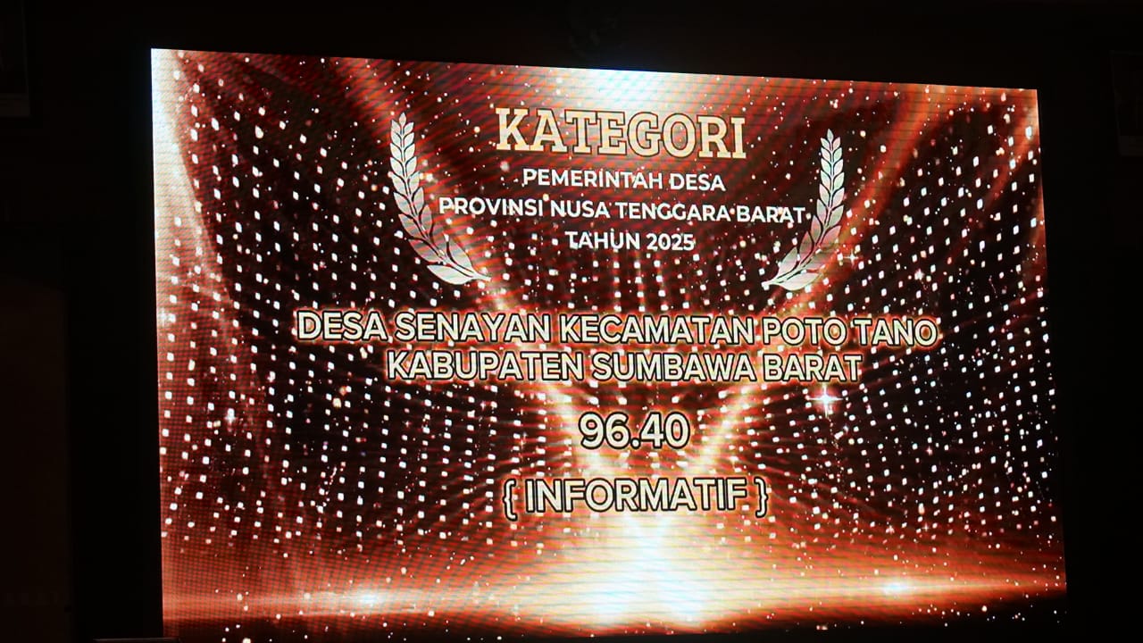 Capaian tersebut juga didukung oleh peran aktif badan publik hingga tingkat desa. Desa Senayan, Kabupaten Sumbawa Barat, pada kategori Pemerintah Desa, berhasil meraih predikat Informatif dengan nilai 96,40, menjadi satu-satunya desa di Pulau Sumbawa yang meraih predikat Informatif tahun ini, sebagai bentuk komitmen pemerintah desa dalam menyediakan layanan informasi publik yang terbuka dan akuntabel kepada masyarakat.