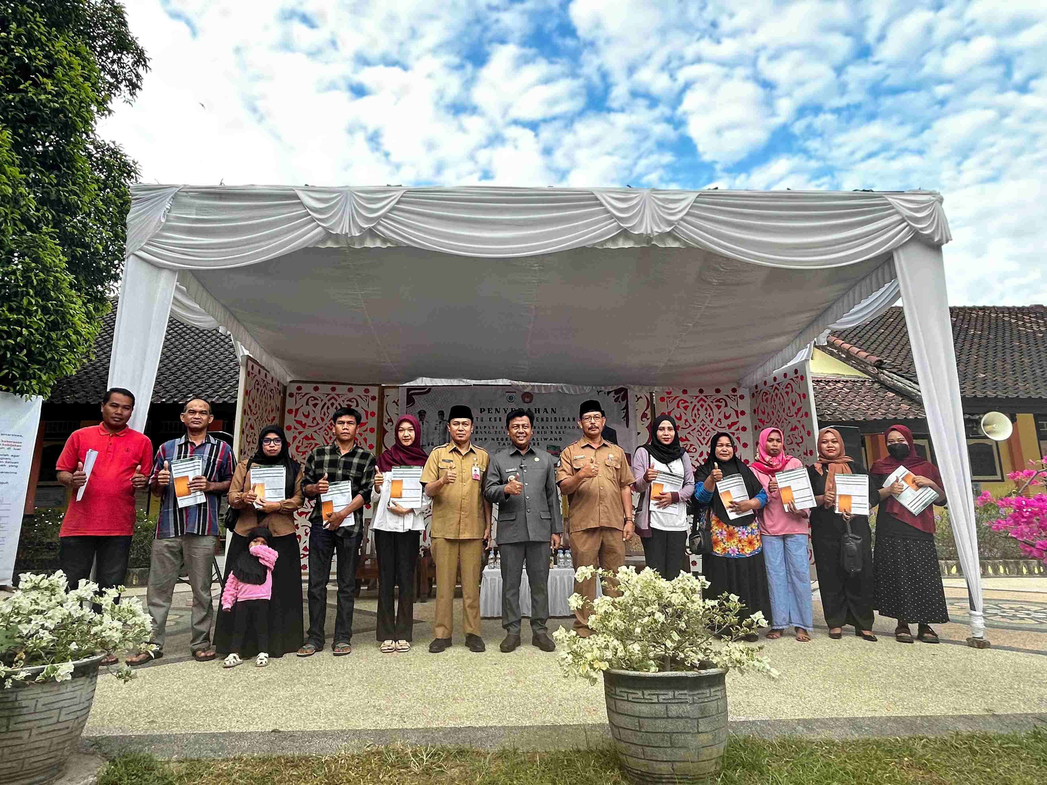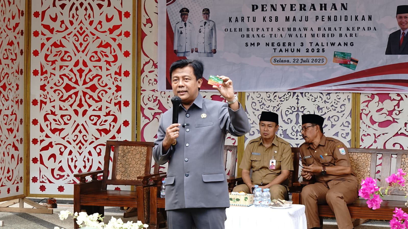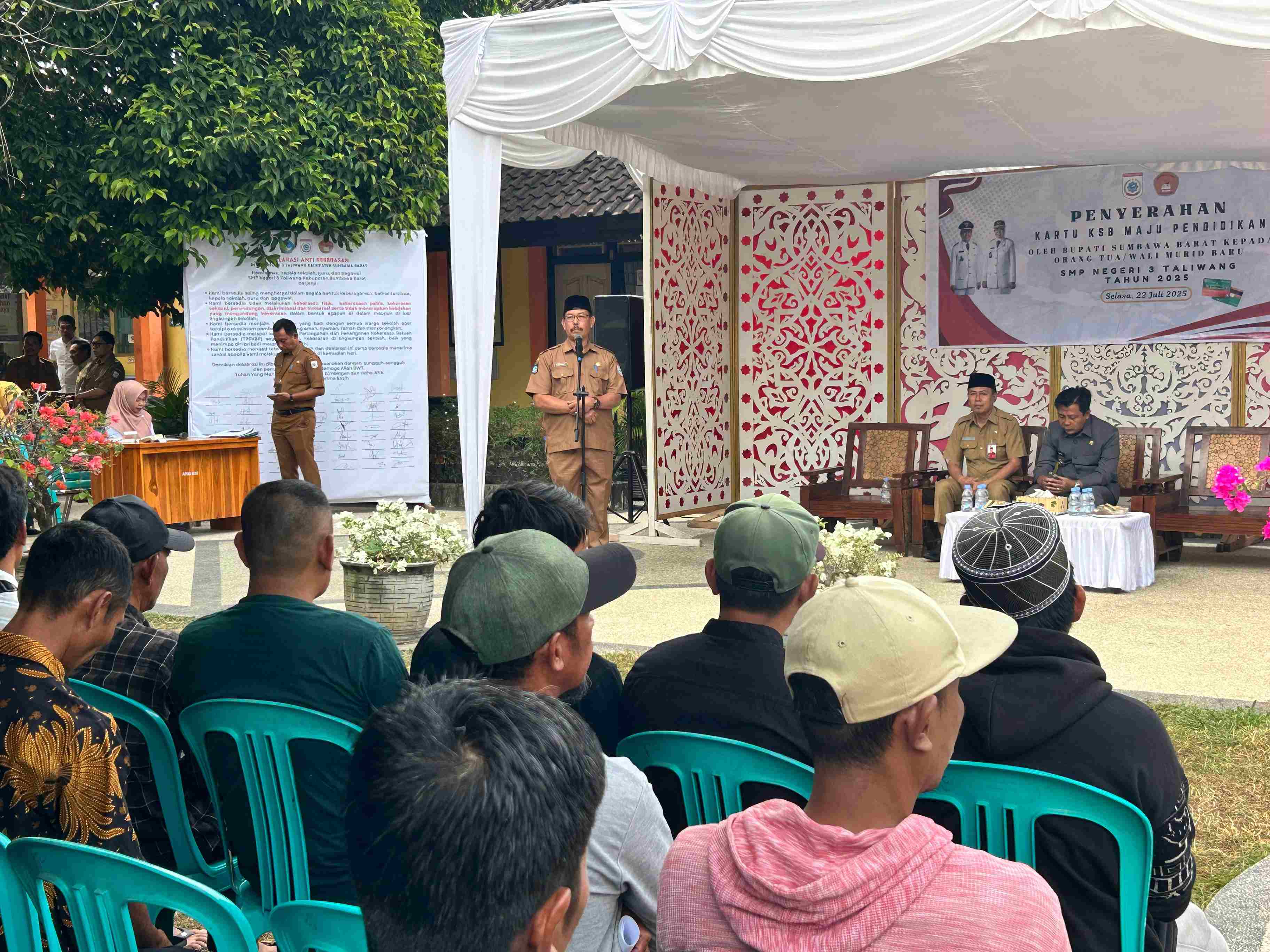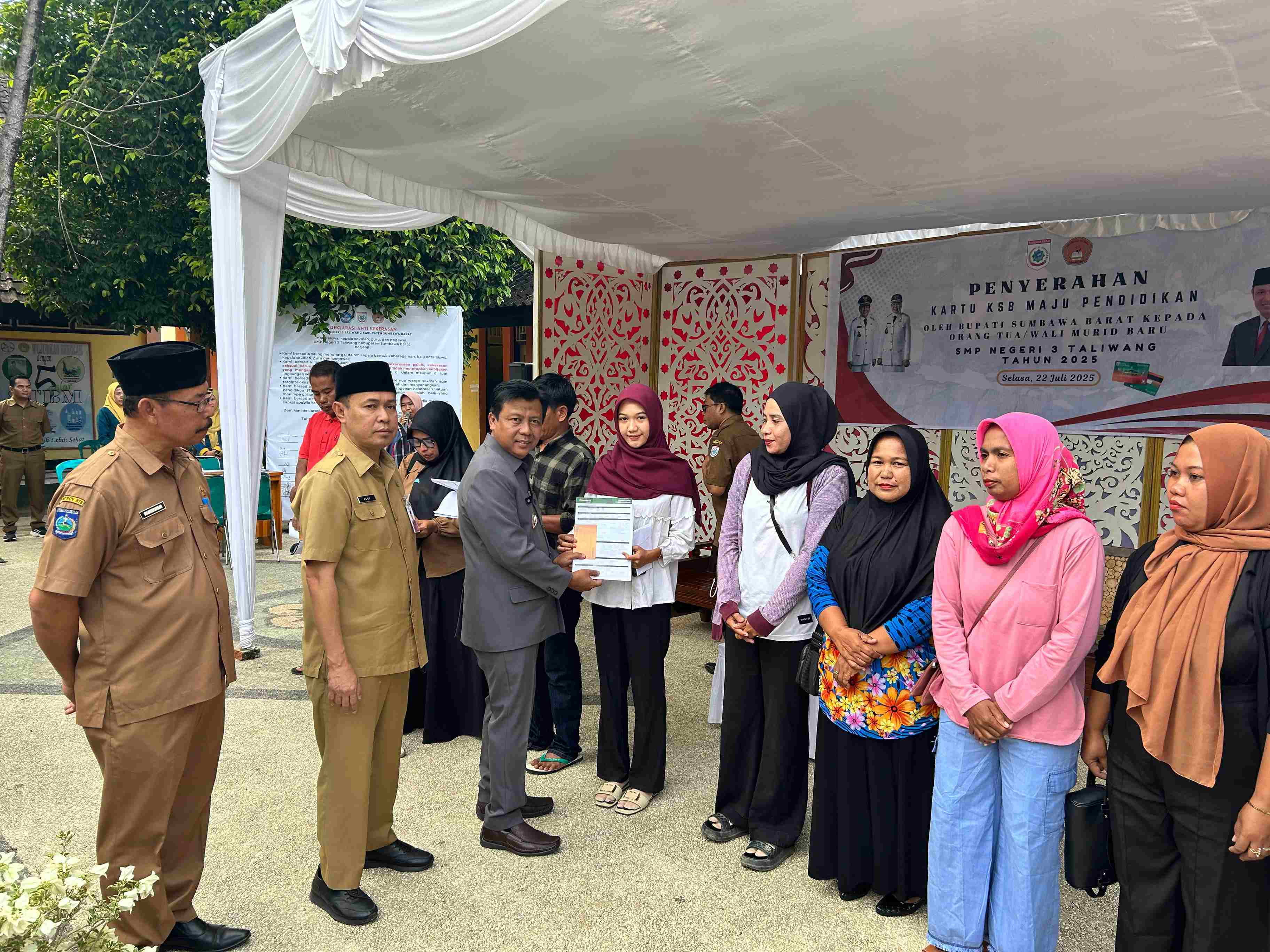 Bupati Sumbawa Barat Serahkan Kartu KSB Maju untuk Pendidikan kepada Orang Tua/Wali Murid Baru SMPN 3 Taliwang
