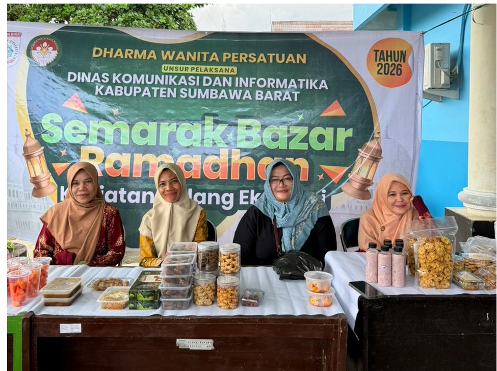 Sumbawa Barat — Dharma Wanita Persatuan (DWP) Dinas Komunikasi dan Informatika (Diskominfo) Kabupaten Sumbawa Barat menggelar Bazar Ramadan sebagai bagian dari program kerja Bidang Ekonomi di halaman Kantor Diskominfo, Kamis (26/2/2026). Kegiatan ini menjadi ajang untuk mempererat silaturahmi sekaligus mendorong kreativitas anggota, khususnya dalam pengembangan ekonomi produktif.