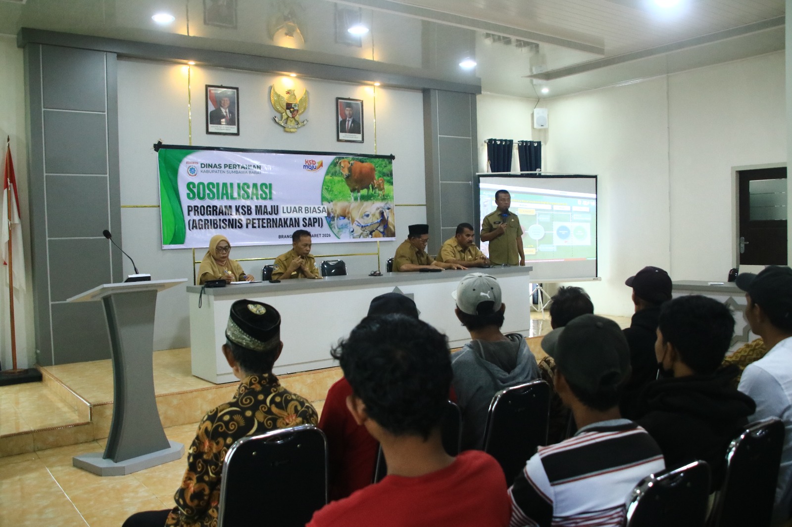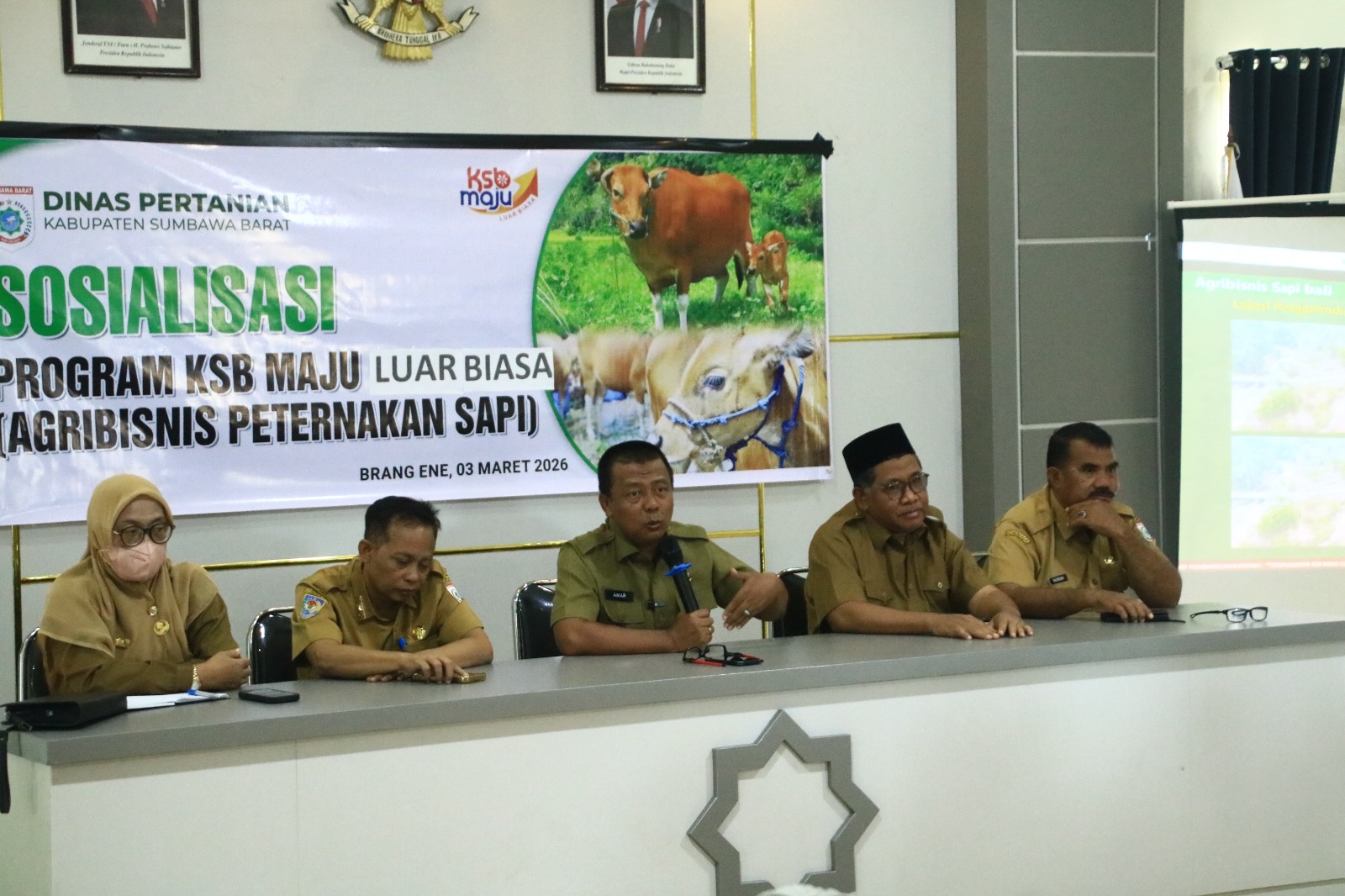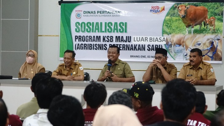 Brang Ene — Pemerintah Kabupaten Sumbawa Barat menggelar Sosialisasi tanda dimulainya Program KSB Maju Luar Biasa Agribisnis Peternakan Sapi (Agribisnis Sapi Bali) di Kantor Desa Lampok, Kecamatan Brang Ene, Selasa (3/3/2026).