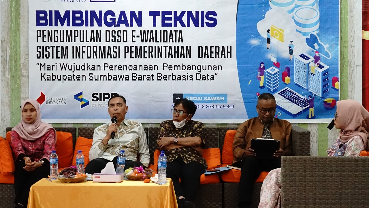 Taliwang, 16 Oktober 2025 — Dinas Komunikasi dan Informatika (Kominfo) Kabupaten Sumbawa Barat (KSB) menyelenggarakan Bimbingan Teknis (Bimtek) Pengumpulan Data Statistik Sektoral Daerah (DSSD) melalui E-Walidata, Kamis (16/10/2025) di Kedai Sawah, Taliwang. Kegiatan ini diikuti oleh seluruh operator data dari Organisasi Perangkat Daerah (OPD) lingkup Pemkab Sumbawa Barat.