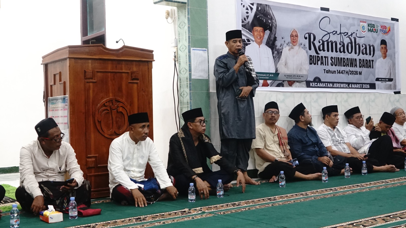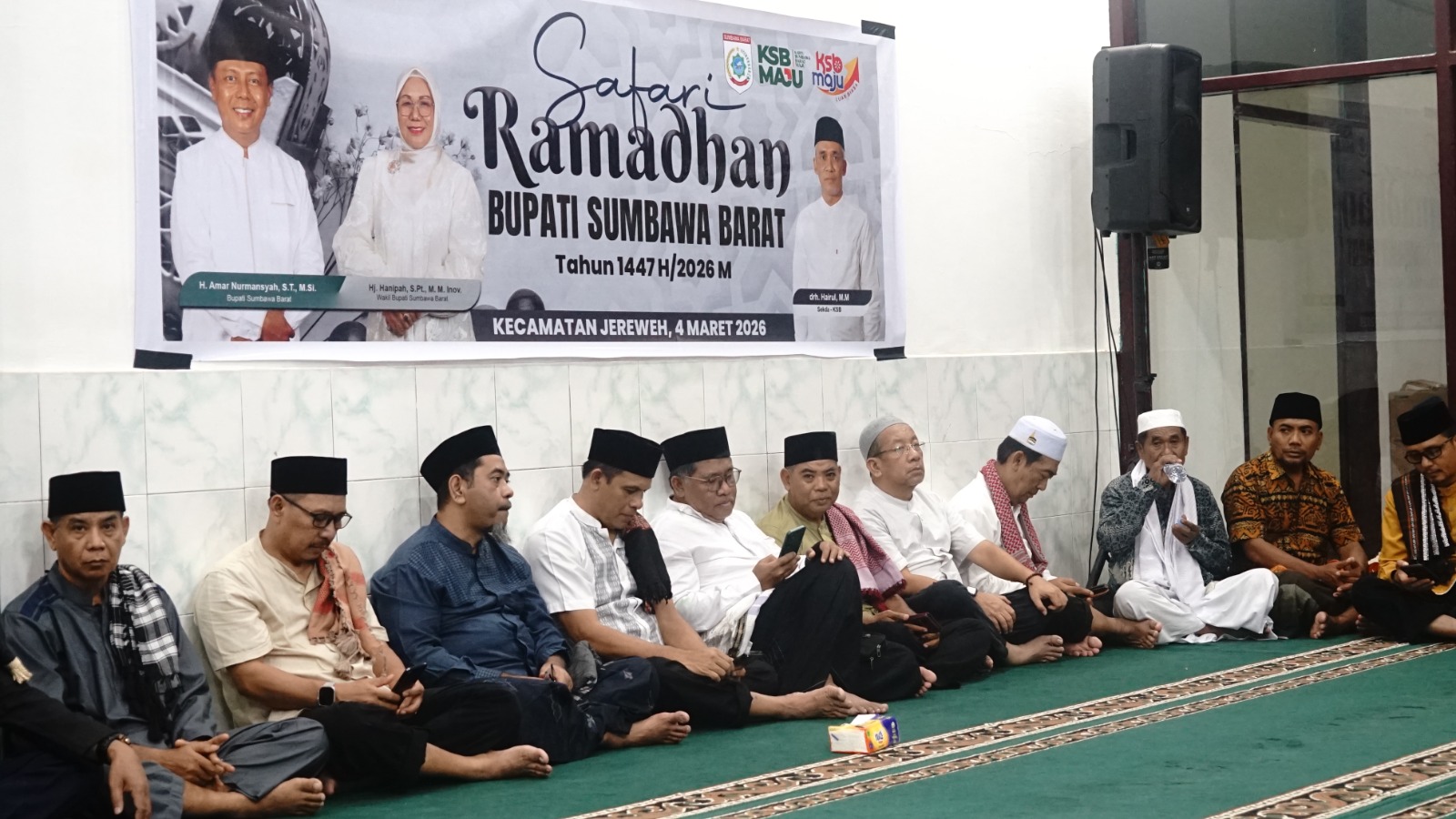 Jereweh — Pemerintah Kabupaten Sumbawa Barat melaksanakan Safari Ramadan hari ketiga di Masjid Al-Muttaqien, Desa Goa, Kecamatan Jereweh, Rabu (4/3/2026). Kegiatan ini dihadiri langsung oleh Bupati Sumbawa Barat H. Amar Nurmansyah, S.T., M.Si., Wakil Bupati Sumbawa Barat H. Hanipah, S.Pt., M.M.Inov., Sekretaris Daerah drh. Hairul, M.M., para Asisten dan Staf Ahli, jajaran Organisasi Perangkat Daerah (OPD), jajaran ketua dan pengurus organisasi wanita, Forkopimcam Jereweh, para kepala desa, serta tokoh masyarakat setempat.